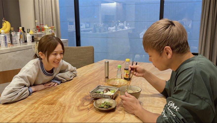 会話の中心は料理で、「家では格闘技の話を一切しない」が自然とできた夫婦のルールだそう。常に勝負と緊張に身を置く武尊が、戦いから距離を置き穏やかな日常へと戻る、そんな夫婦団欒の時間が映し出された。