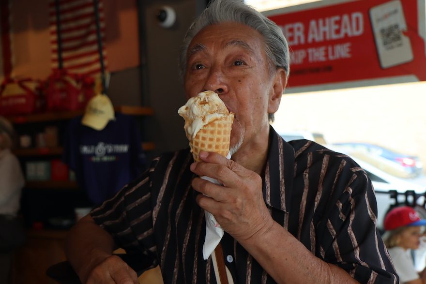 また、今ロサンゼルスで人気を集めているというアイスクリーム店を訪れた高田は、店員お勧めの「シーソルト・キャラメルリボン」のアイスに「おいちぃ~!ベリーグッド!」と感激する。