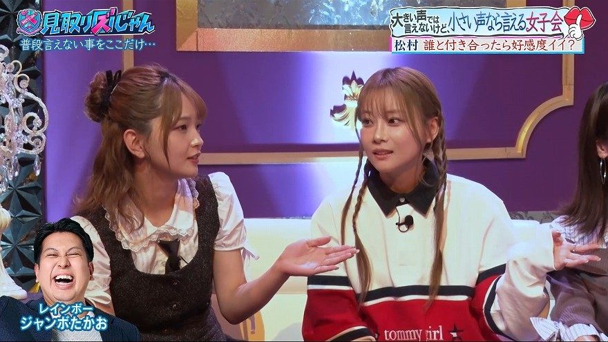 そんななか、福留は「ジャンボさんにいってほしいです」とYouTubeでの共演が話題となったレインボー・ジャンボたかおを推薦。松村が「仲良し」とうなずくと、リリーも「ジャンボが一番好感度下がらんかもしれんな。一緒に仕事もしてるし」と納得の表情を浮かべた。