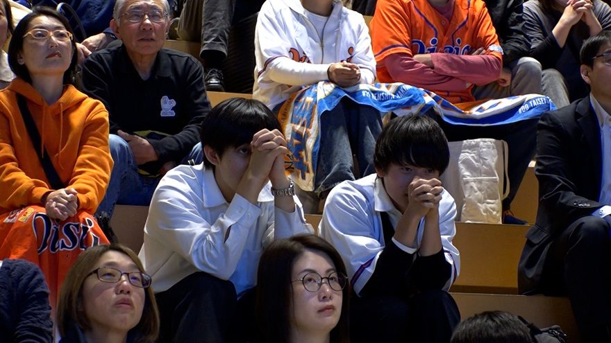 ここで巨人、最後の育成5位指名でついに知念の名前が呼ばれた。パブリックビューイング会場は一斉に沸き、喜びで涙するファンの姿も。