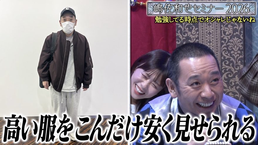 嶋佐は「大悟さんのほうがかっこいい。ナチュラル」と評価すると、「高いよ、服は」と上下スウェットとアウターの値段を明かした大悟に、「高い服をこんだけ安く見せられる」「そのかっこよさ好きですね」と大絶賛。