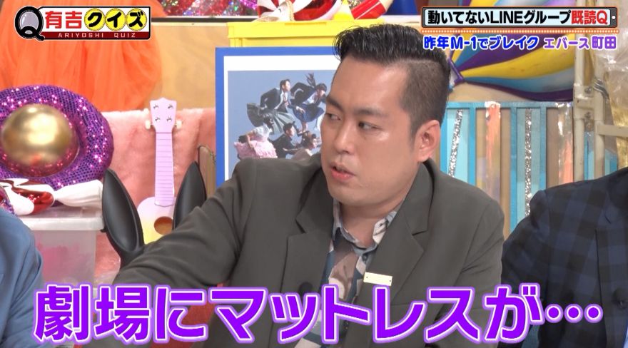 すると有吉弘行が町田に「ないの?不満は、後輩たちに?」と尋ねた。これに対し町田は、先輩がいるときに若手が劇場のマットレスに寝ているのが気になると返答。そこでこの問題を、LINEグループで注意することに。