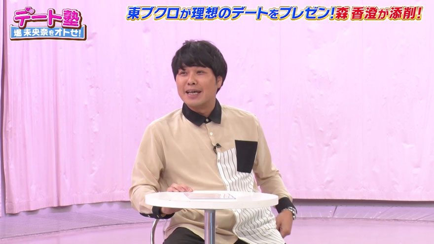 今回の企画は「デート塾」第3弾。堀と付き合いたい東ブクロが、森から恋愛のイロハを学ぶことになった。