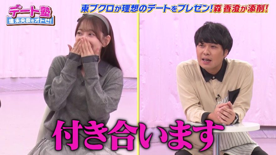 番組冒頭、東ブクロから「今日、僕と堀未央奈さん、付き合います」「この30分後付き合っています」と堂々の交際宣言が飛び出す。