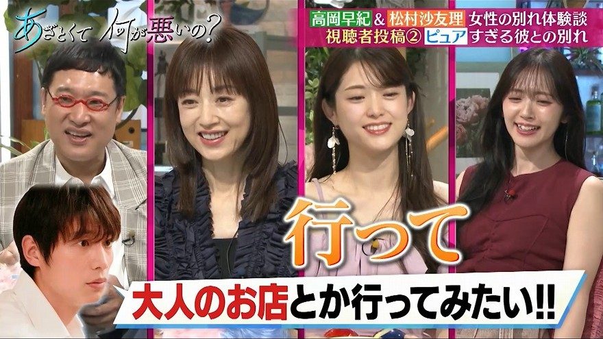 そんな鈴木を山里は「ええええっ!うそ!」とまったく理解できないようだったが、松村は「私も全然行ってきてほしい」と賛同。「だってお金が発生してるということは、女の子に気があるわけがないというのがわかるから」と冷静に語った。