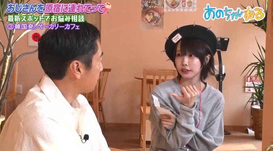 9月29日(月)に放送された『あのちゃんねる』には、チュートリアル徳井義実とブラックマヨネーズ小杉竜一がゲスト出演。おじさんだけでは行きづらい原宿の話題スポットを、あのちゃんと一緒に巡るロケを行った。