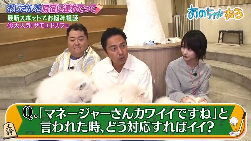 そのほか番組では、原宿で大人気のサモエドカフェや“映える”クレープ店を訪問。中年芸人の徳井と小杉が、あのちゃん以上に興奮してロケを満喫する姿も。かわいすぎる3人の自撮りショットは必見だ。