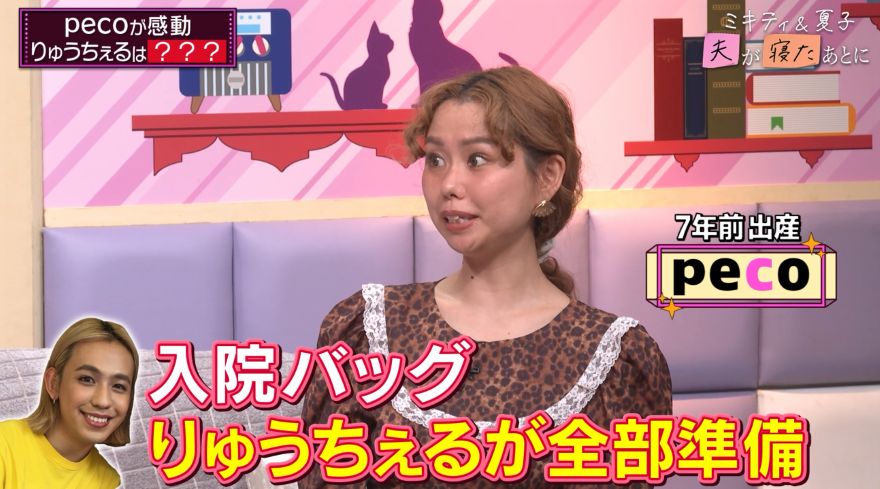 藤本と横澤が出産時に助かった夫の行動を語ると、pecoも「入院バッグに関してはryuchellが全部準備してくれて」と明かし、「ええーっ!」と共演者たちから驚きの声があがる。