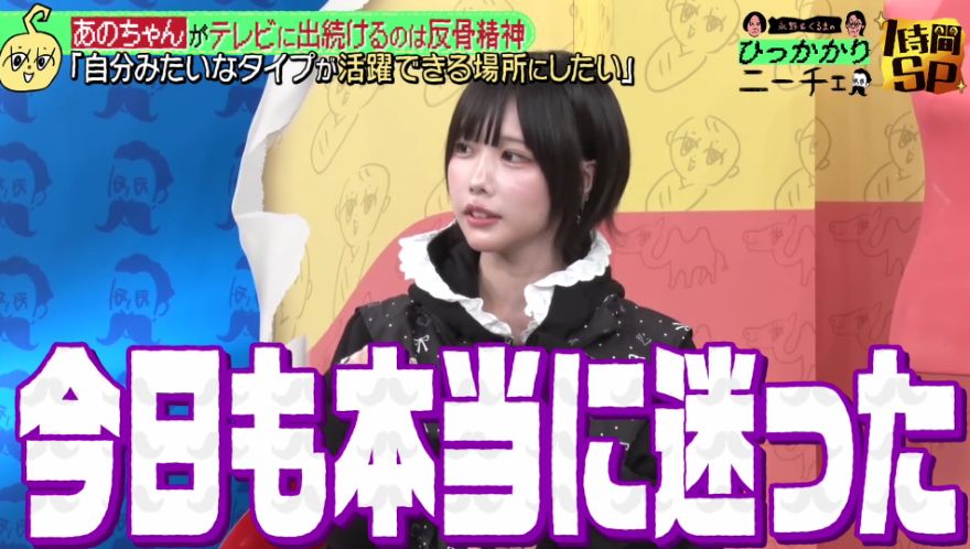 あのが忙しいわりにテレビ番組に多く出ているという話題になると、あのは「でも2年前くらいからようやく仕事を(多少)選ぶようになった」「今日も本当に迷った」と明かす。