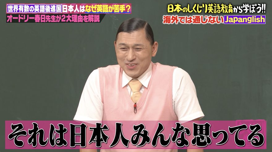今回は「なぜ日本人は英語が苦手なのか?」をテーマに、オードリーの春日俊彰による特別授業を実施。日本の英語教育の歴史と独自の分析から、日本人が英語を話せない理由を紐解いていった。