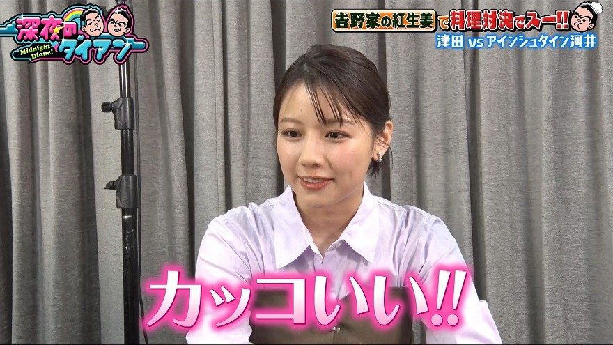 また、同じく審査員の渡邉美穂も河井の包丁さばきに「カッコいいですよね、こんなスマートにやってもらえたら」と見とれていたが、先に渡邉が津田の大ファンだと話していたことから、津田は「俺のこと好きなんちゃうの」と不満げな様子。
