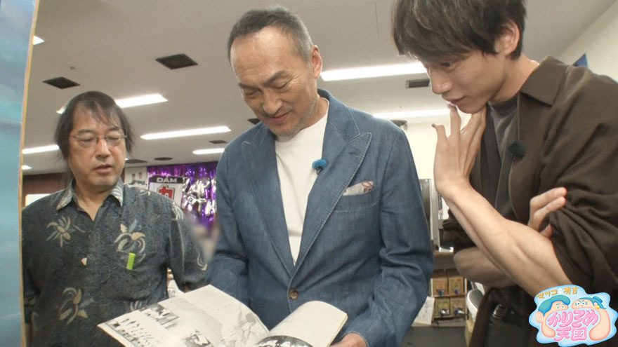 ビルのオープン当時から営業を続けるフレッシュジュースショップや、常に行列が絶えない洋食の名店などを巡った一同が行き着いたのは、「昭和ブックカフェ」。貴重な昭和の雑誌や漫画が楽しめるこの店で、渡辺の映画デビュー作『瀬戸内少年野球団』のパンフレットを発見した。