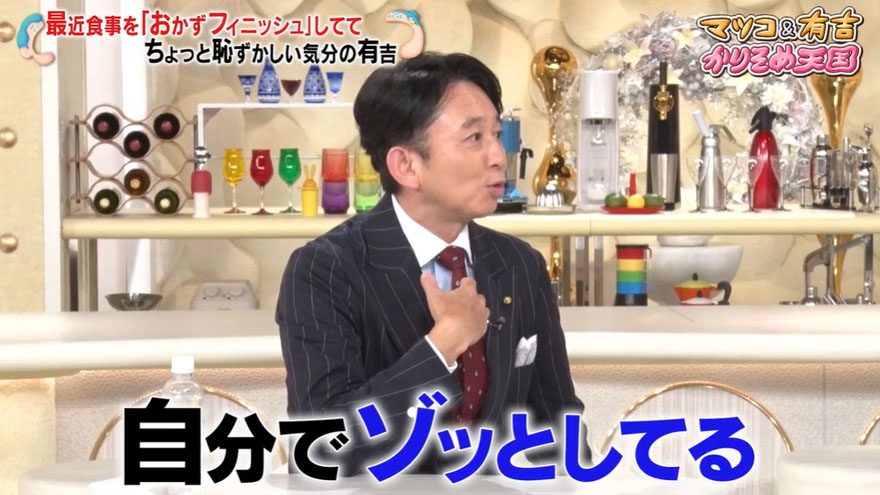 「恥ずかしい行為のような気がする」と反省する有吉に、マツコは「おかずフィニッシュ!?」と信じられない様子。