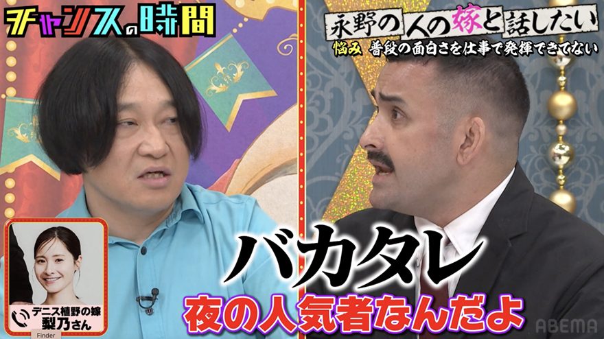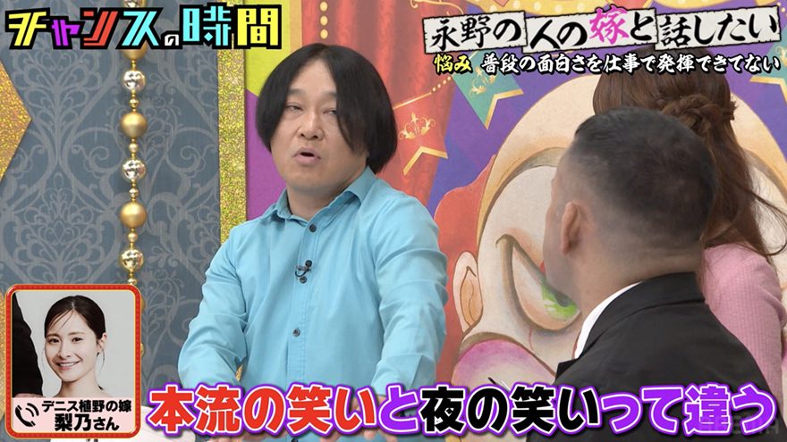 スタジオには、電話相談の相手となる芸人妻の夫たちが登場。妻の悩みを永野が一刀両断していく一方、先輩芸人の前で明かされる妻たちの本音に芸人夫たちは動揺する展開となった。