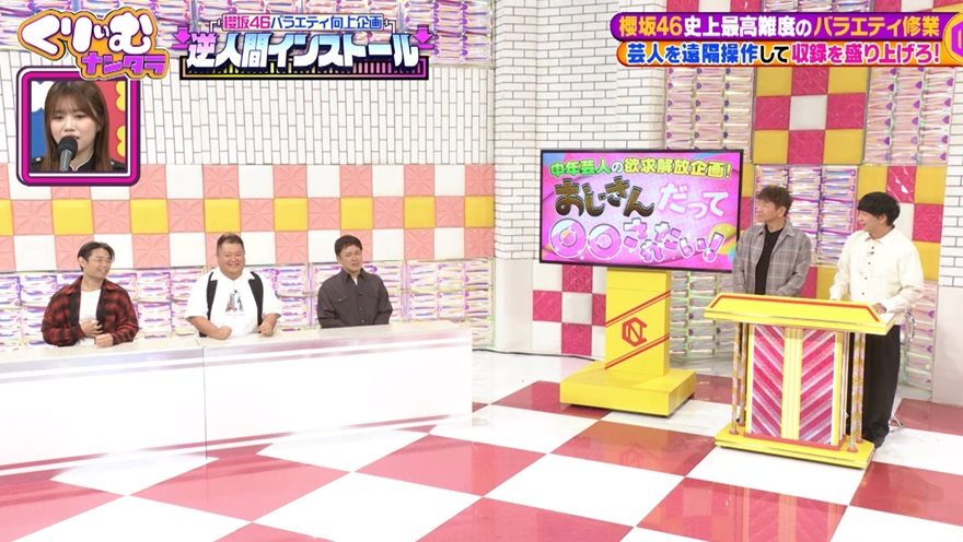 ここから櫻坂メンバーたちのインストールによって、ベテラン芸人たちが愛妻家をアピールする展開になる。