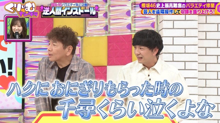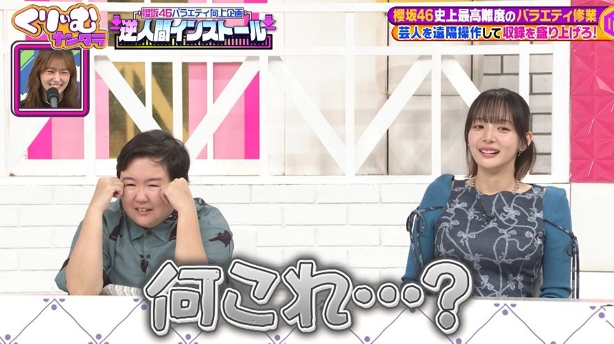 番組中盤では、カカロニ・栗谷が「性欲ってありますか?」とベテラン芸人たちに質問した。櫻坂メンバーは「そんな質問やめてもらっていい?」とストップをかけ、代わりに「パートナーとどこまでスキンシップ取る?」という質問に答えることに。