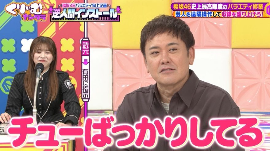 これまで芸人たちに遠隔操作され、着実にバラエティ力を磨いてきた彼女たちが、今回初めて“インストールする側”に挑戦。くりぃむしちゅーらベテラン芸人たちを遠隔操作し、収録現場をカオスに陥れた。