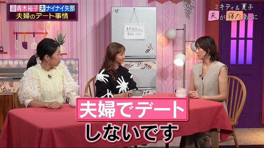 10月28日(火)に放送された同番組には、ゲストに青木裕子が出演。“夫婦でデートはするか?”について3人が語った。