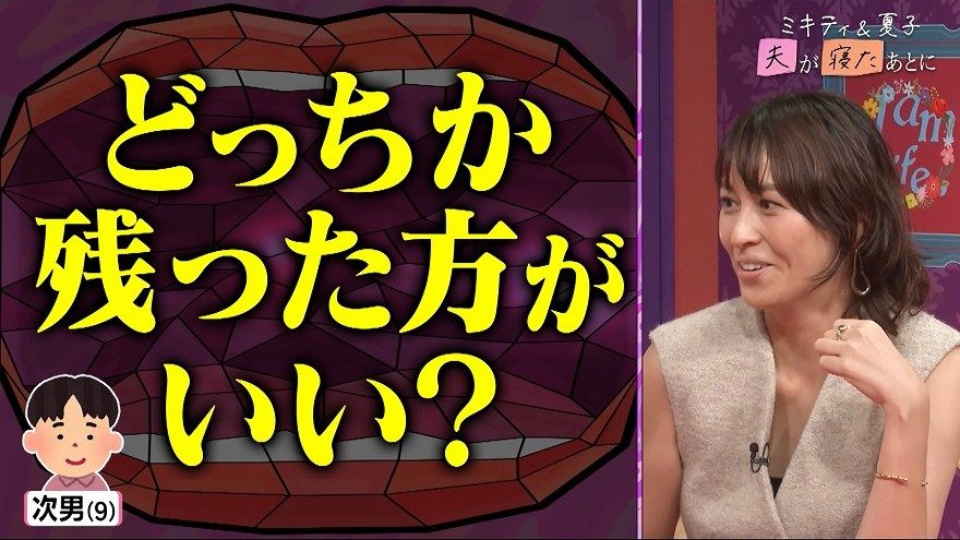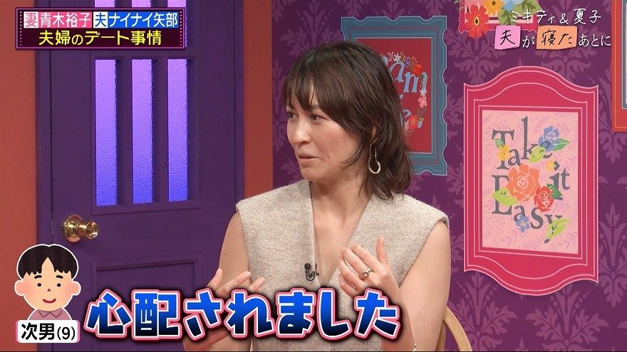青木は続けて、子ども2人がサマースクールで1週間ほど家を空けたときのエピソードを披露。久しぶりに夫婦だけになるということで、普段の2人を知る次男から本気で心配されてしまったそう。「僕たち2人とも行ったら、パパとママ2人でしょ? どっちか残った方がいい?」と聞かれたと明かし、スタジオの笑いを誘った。