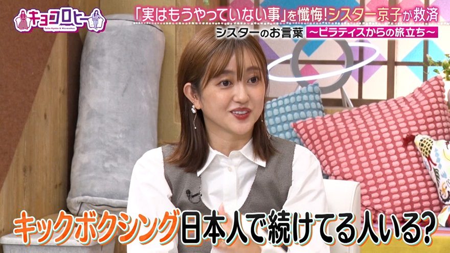 これに対してシスター齊藤は、自身もピラティスで挫折した過去があると明かし、「キックボクシングはもっとハード。その時点ですごい」と慰めた。さらに、これまでさまざまな趣味に挫折してきた経験から、「やっぱり2回でだいたい(継続できるか)決まる」と“あるある”を語り、スタジオを笑わせた。