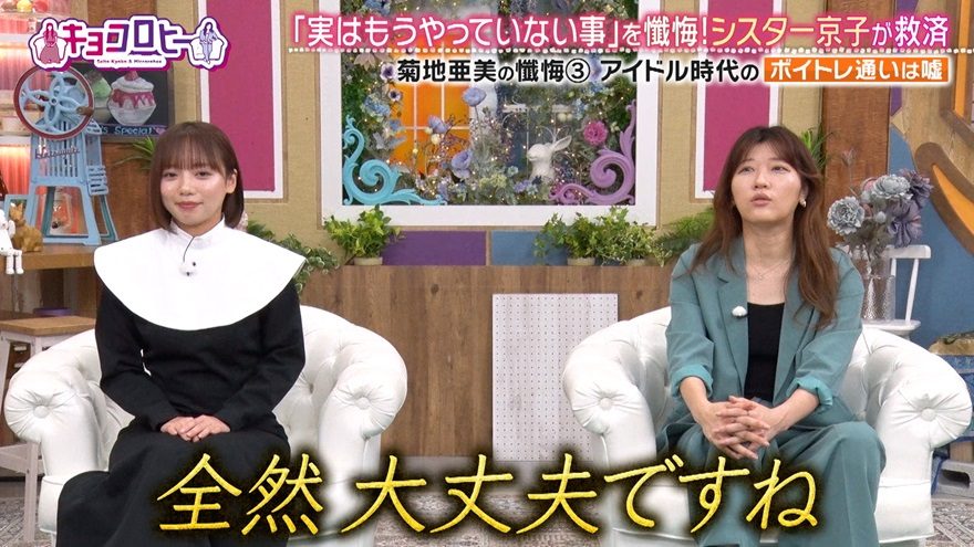 「なんでそんな余計なこと言うんですか!?」と理解できないヒコロヒーとは対照的に、シスター齊藤は「実力でセンターに行く人もいれば、天才的な人もいる。結果的に元アイドリング!!!といえば菊地亜美さんのお名前も挙がるじゃないですか。それが結果だと思います」と赦しの言葉を授けた。