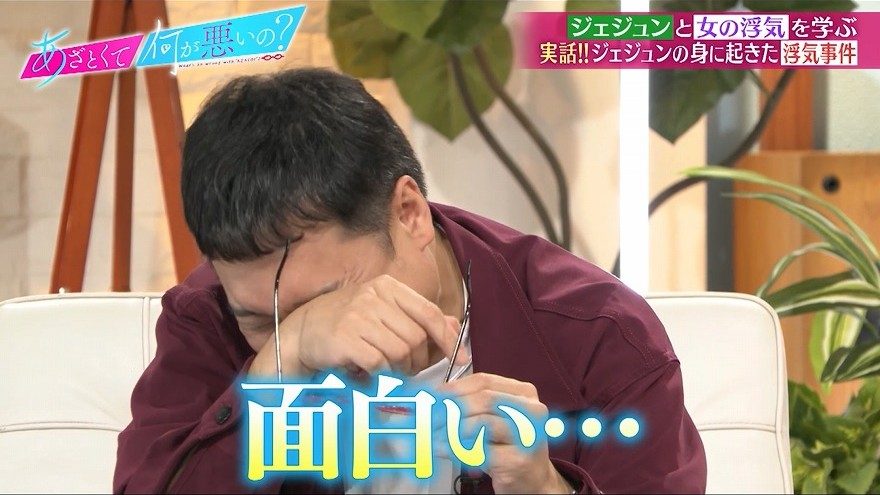 「人の話を最後まで聞いてください」と2人を落ち着かせようとするジェジュンに、山里は「面白い…」と笑い泣きする。