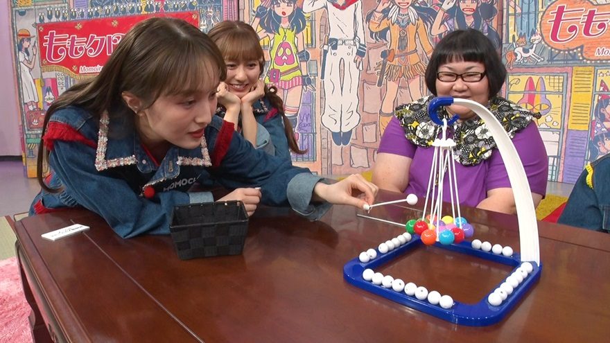 このゲームはその名のとおり、吊るされた器に入ったカラフルなボールの上に、白玉を乗せていくというもの。白玉を落としたら負けだ。6人でプレイし、2巡目までいったものの、高城れにが白玉を落としてしまい、罰ゲームが執行される。