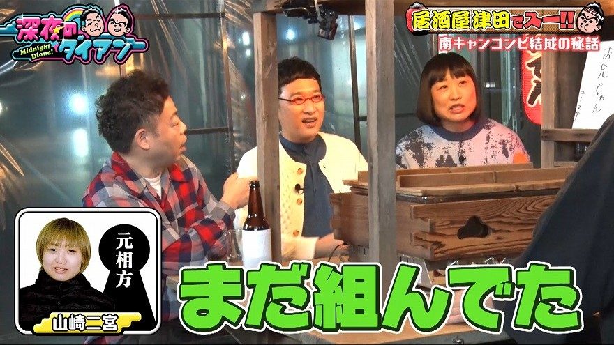 11月11日(火)の『深夜のダイアン』では、ダイアンと深い関係のあるゲストと酒を酌み交わして本音で語る企画「居酒屋 津田」が放送された。