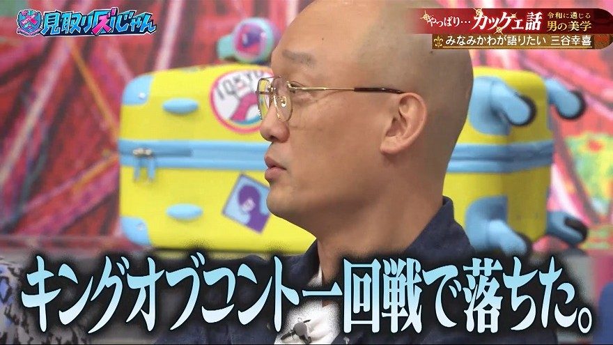 みなみかわは三谷の言葉で自信をもったと明かすと、「三谷幸喜さんが褒めてくれるんやったら大丈夫やと思って、その年『キングオブコント』1回戦で落ちたんですよ」と続け、笑いを誘った。
