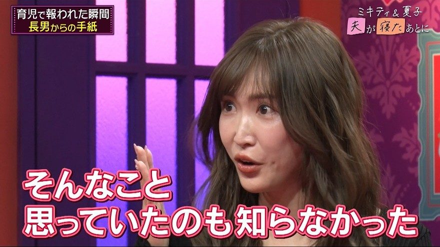 番組では“妊娠・出産”“ワンオペ”“思春期”というテーマで質問を用意。「大変だった子育てのなかで報われた瞬間は?」と問われた紗栄子は、「息子からの手紙」と答えた。