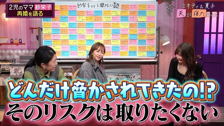 藤本と横澤が「再婚しそうだけど、しなさそう」とイメージを語ると、紗栄子は「それで子どもたちの生活が脅かされるとなると、そのリスクはもう取りたくない」ときっぱり。息子を留学させた理由について「当時は自身を追うパパラッチが来るから安全に遊ばせられなかった。健全な幼少期を過ごさせてあげたいと思うと、日本で暮らすのが難しかった」と語っていたこともあり、横澤は「どんだけ脅かされてきたの」と苦労を慮っていた。