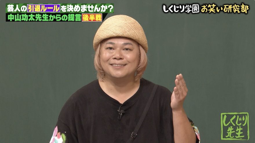 番組前半では、「楽屋で人狼をガチでやり出したら即引退」「トリオの弱ボケ担当なのにポーカーやり出したら即引退」など、“芸人引退”ルールを次々と発表した中山。