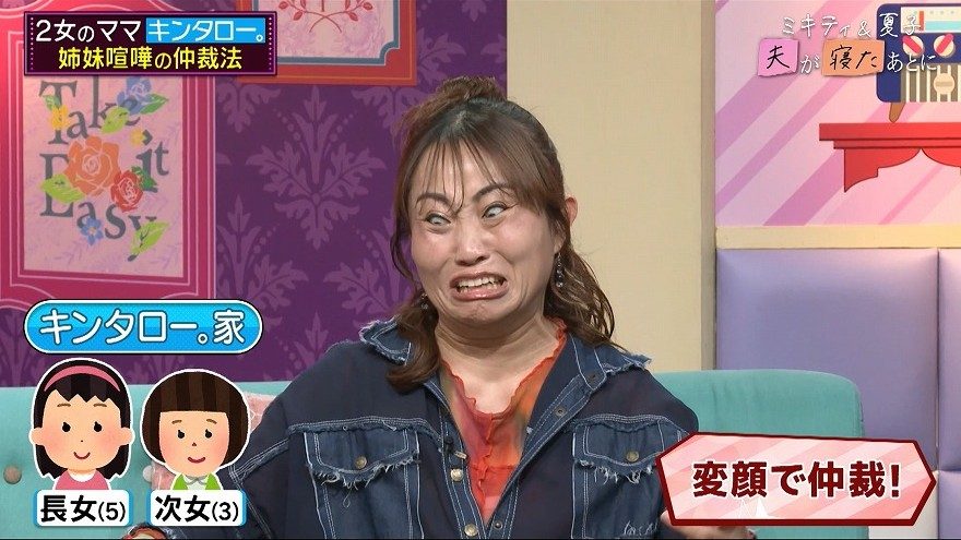 喧嘩のたびに得意の変顔で「鬼が来るよ」と仲裁していたが、最近では「やり過ぎたのか、効かなくなってきた」そうだ。