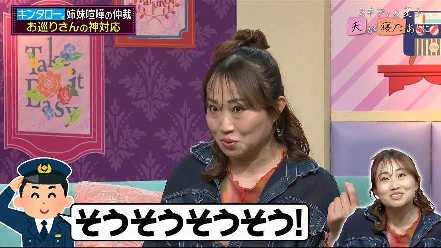 キンタロー。は「ママが呼んでるから」と娘たちに言うと、警察官にあいさつしつつ「言うこと聞かないから私が呼びましたよね~?」と話しかけた。すると警察官も「そうそうそうそう」とキンタロー。の話に乗ってくれたそうだ。