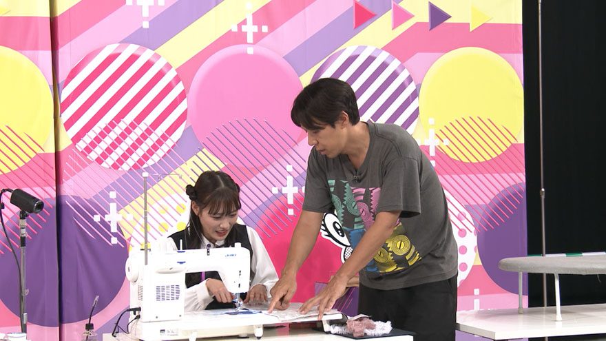 まずは生地選びからスタートする一同。目を輝かせながら生地を選ぶなか、佐々木彩夏は「裏表で違う生地はできますか?」とコカドに相談する。しかし、「今日は無理!」と一蹴されてしまい、落ち込む。あれもこれもしたいとイメージがふくらむ面々に「やってみよう! 今日、ケツあるん?」とコカドも熱が入っていく。