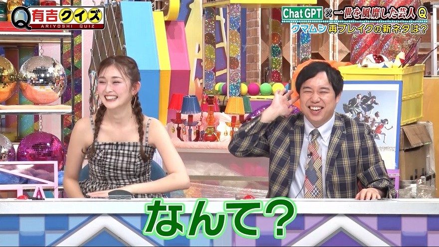 11月30日(日)の『有吉クイズ』では、芸能界で一時代を築いた芸人たちの新ネタを生成AIに考案させる企画「ChatGPT×一斉を風靡した芸人クイズ」が放送された。