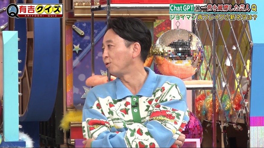 11月30日(日)の『有吉クイズ』では、生成AIに一斉を風靡した芸人たちの新ネタを考えさせる企画「ChatGPT×一斉を風靡した芸人クイズ」が放送された。