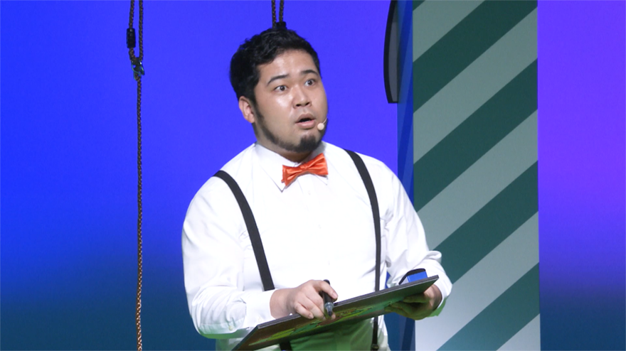 この日の公演で行われたゲームはもちろん「この英語読めるかな?」。「お客さんの前でやるの嫌だ」と二階堂は苦笑いする。