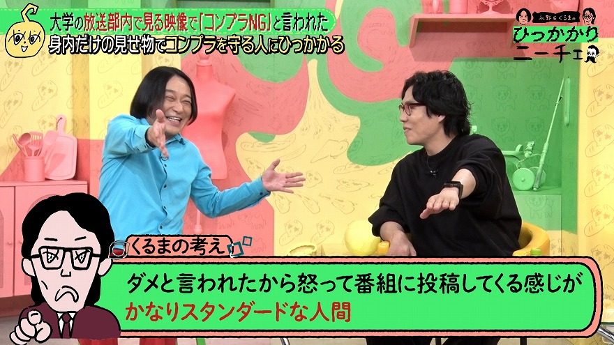 永野はこの投稿に対し「もっと尖れ」「ヌルい」と厳しい言葉を浴びせるが、令和ロマン・くるまは、“ダメと言われたから怒って番組に投稿してくる”大学生を「めっちゃど真ん中でスタンダードな人間」と評価。「(厳しい永野など)みんなからしたら通ってる道かもしれないけど、まだ1周目なんだから」と温かい目で見るべきだと語ると、「ただ青春です」とまとめた。