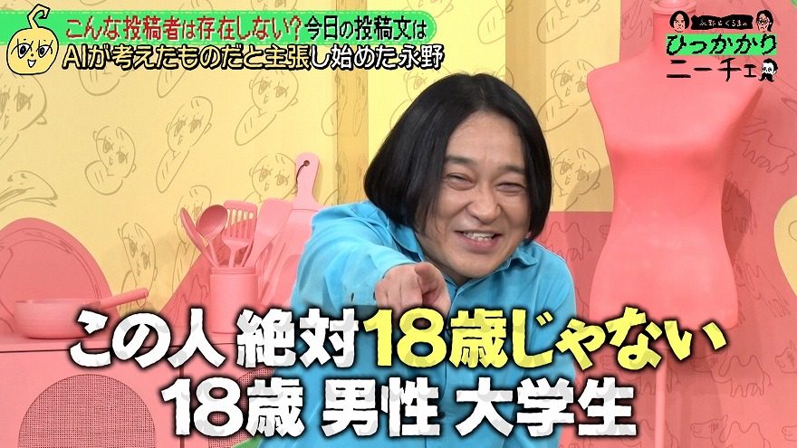 12月2日(火)に放送された同番組では、永野が最近はなんでも“AIが作ったんじゃないか”と疑うようになったことを明かし…。