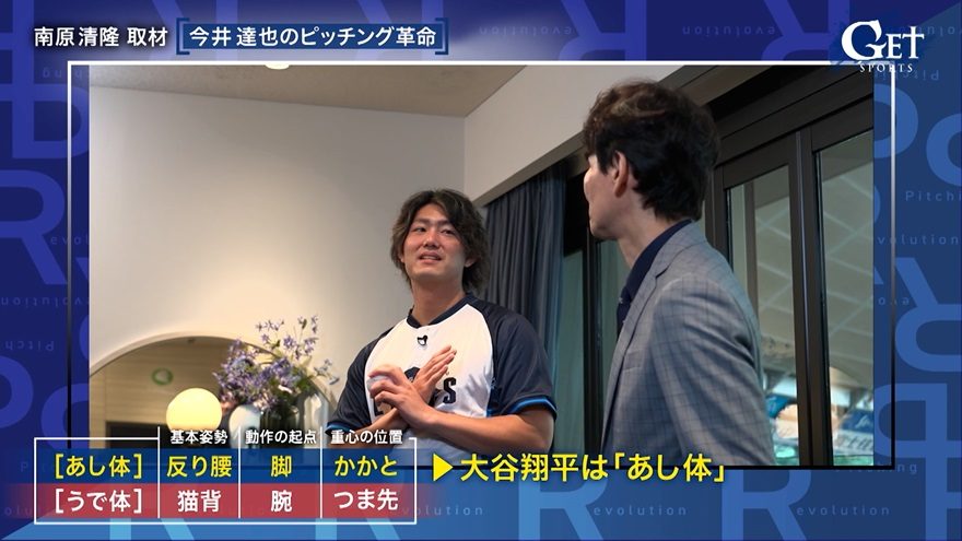今井:「それは体の前半分を使って投げる『うで体』の人のやり方なんですよ。『あし体』の僕らは、胸を閉じたらダメなんです。むしろ、胸は早くバッター方向へ向けて開いてあげないと」