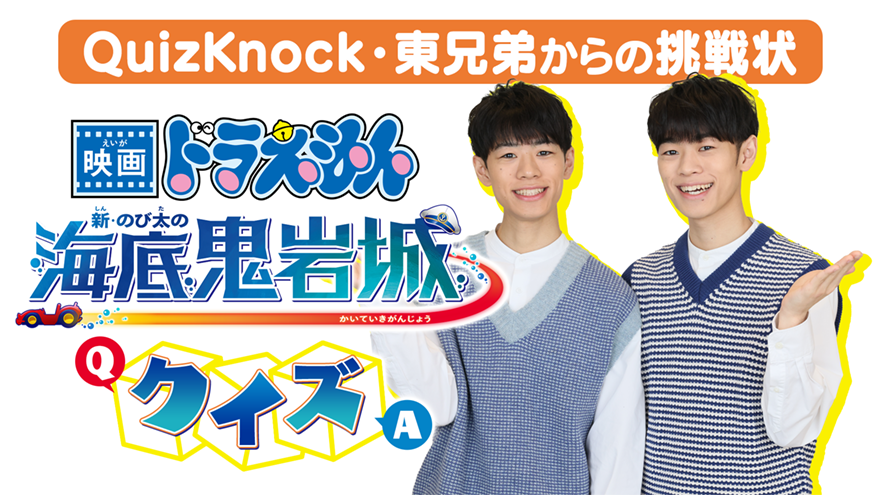 新作『映画ドラえもん 新・のび太の海底鬼岩城』の宣伝アンバサダーに決定したQuizKnockの“ドラえもん大好き兄弟”東問&東言が考案したクイズを出題。
